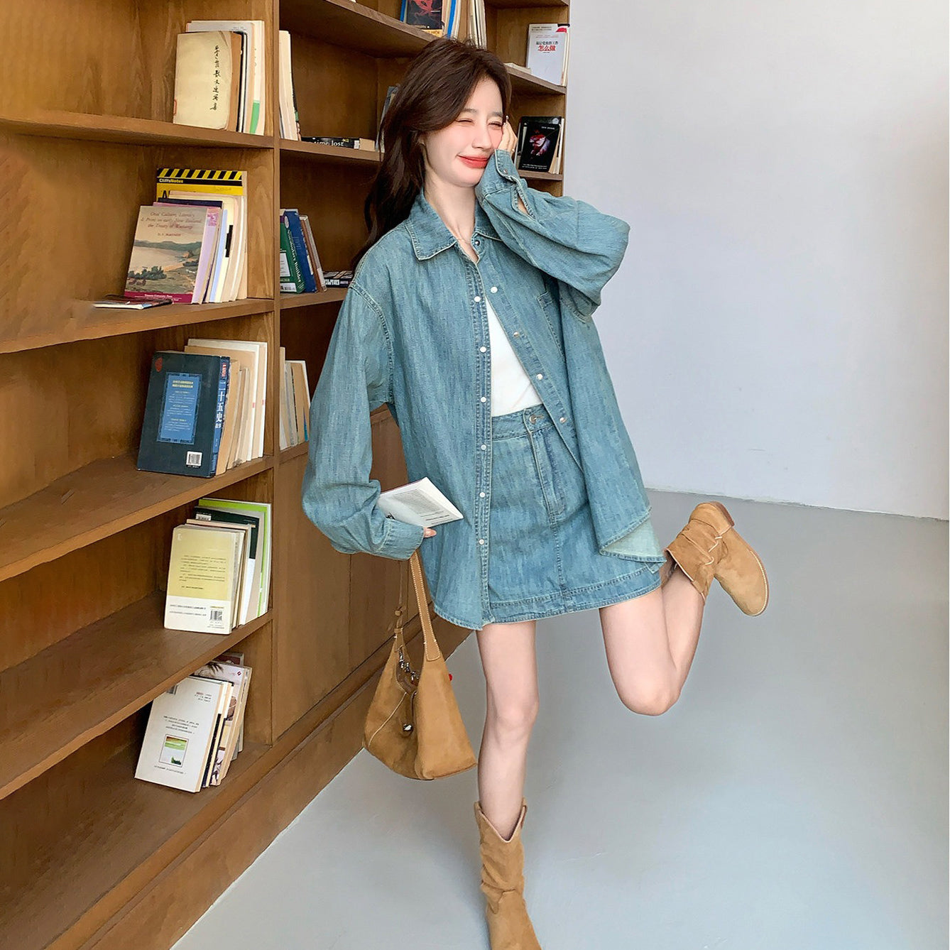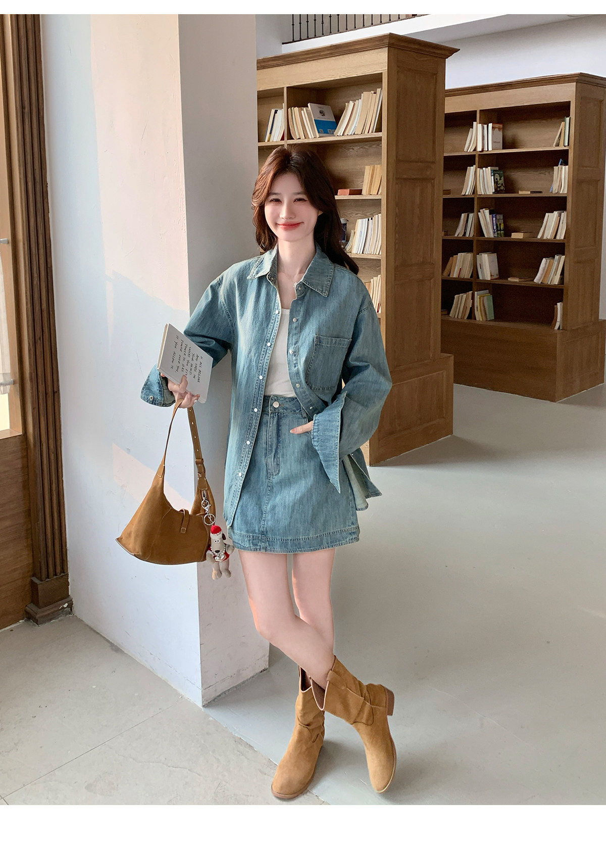 牛仔外套+短裙套裝|休閒顯瘦兩件套女|時尚百搭氣質穿搭【JZ系列】