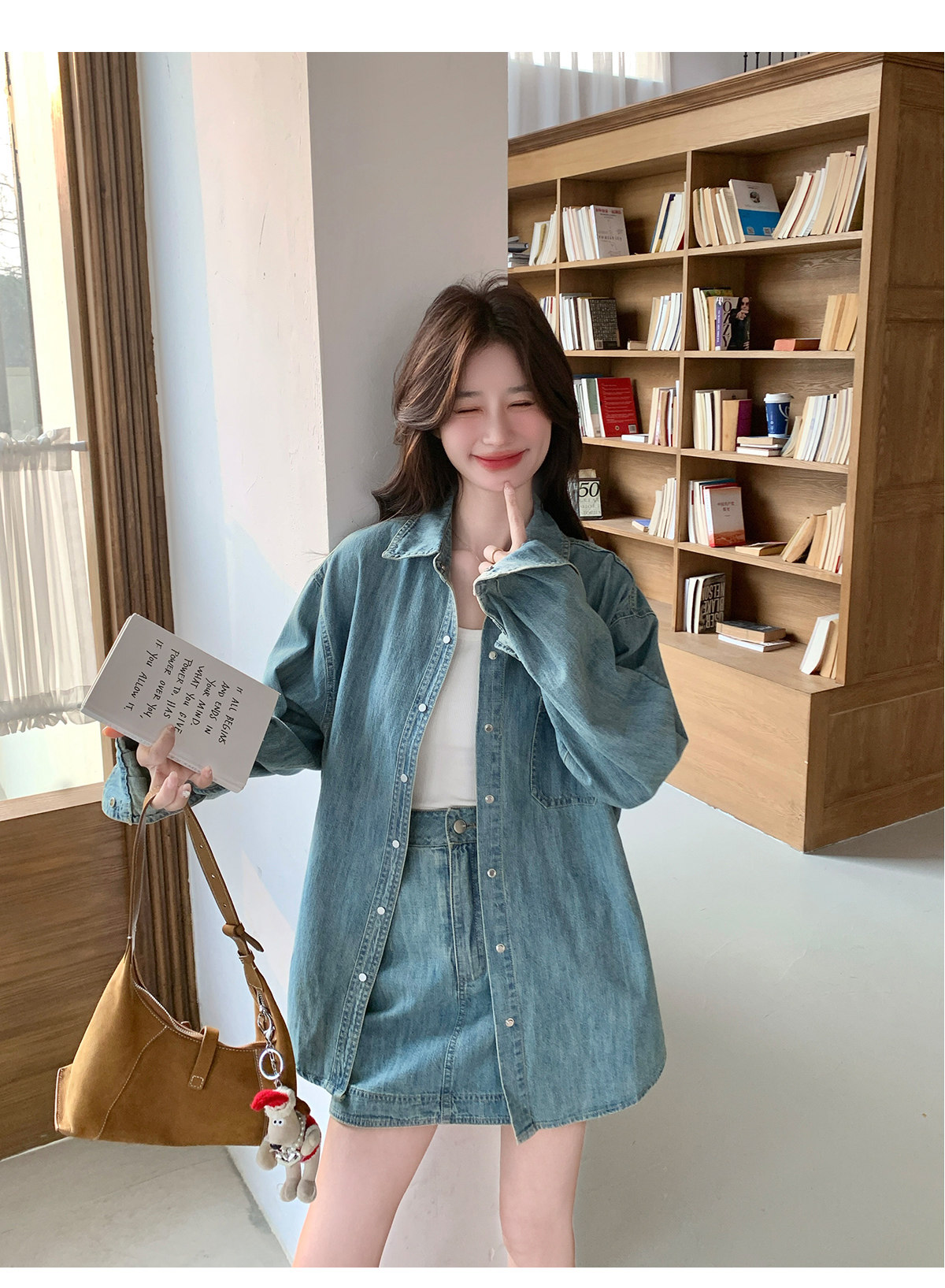 經典牛仔元素結合外套與短裙設計,整體俐落又有型。