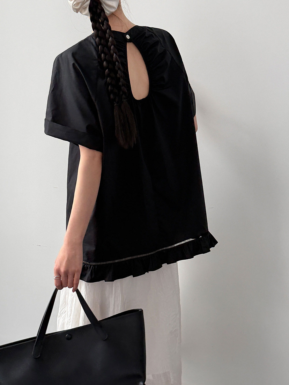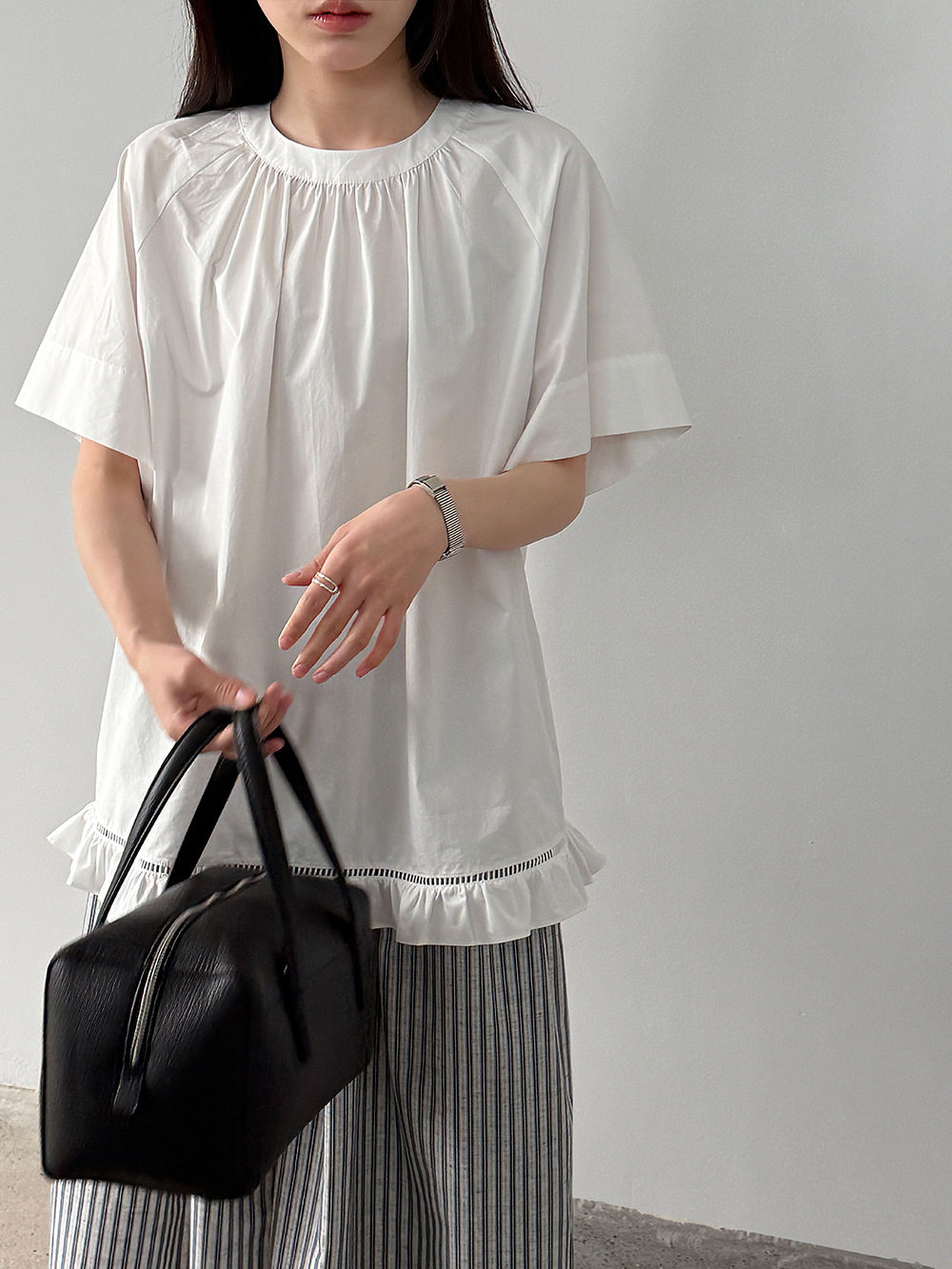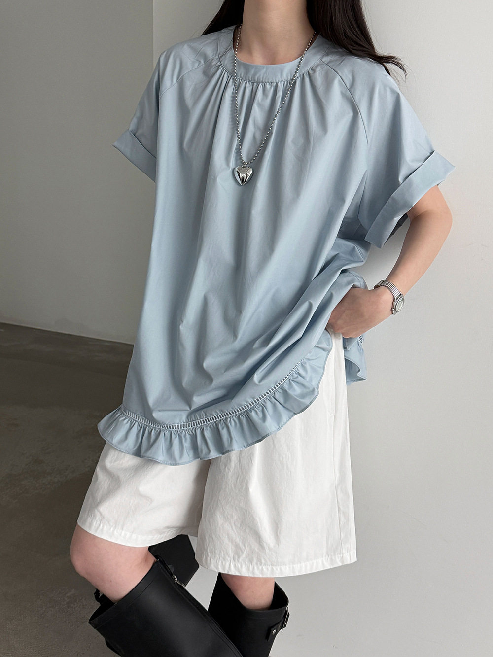 【トップス】韓国風 スモック風 ブラウス レディース 2026夏 ダーツデザイン レースフリル 透かし 通勤トップス ゆったり【JZシリーズ】